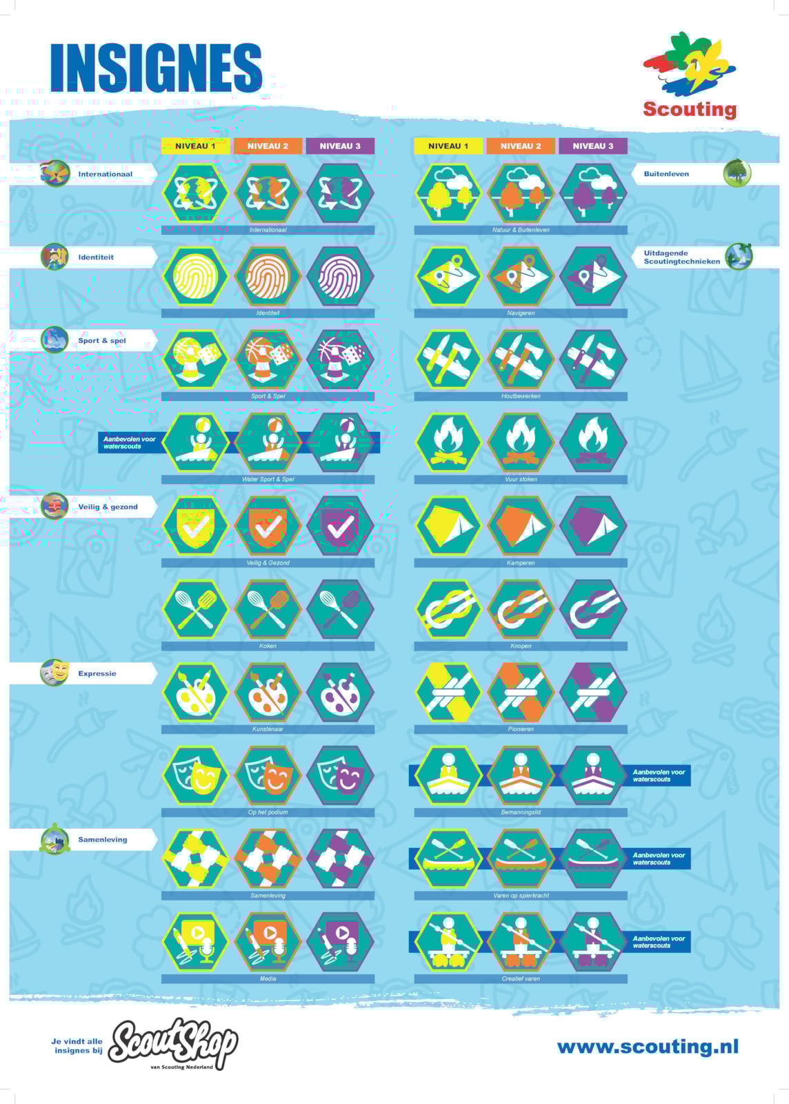 Missie van Scouting"Scouting is een open, maatschappelijk betrokken jeugd- en jongerenorganisatie, die haar leden met het Scoutingprogramma een plezierige en uitdagende vrijetijdsbesteding biedt. In dit Scoutingprogramma wordt in actief samenspel met leeftijdsgenoten, geïnspireerd op het buitenleven, een bijdrage geleverd aan de vorming van de persoonlijkheid. Hierdoor leren scouts met respect voor zichzelf en hun omgeving de eigen grenzen te verkennen en verantwoordelijkheid te nemen voor zichzelf, elkaar en de wereld om hen heen." Bij onze scoutinggroep, die gericht is op het spel op het water, vinden vanzelfsprekend vele "natte" activiteiten plaats. Het roeien, wrikken en zeilen gebeurt met de speciaal ontworpen, kindvriendelijke en veilige lelievletten. Spelenderwijs raken de kinderen vertrouwd met deze vaartuigen. Gaandeweg leren de kinderen meer verantwoordelijkheid te dragen. Verantwoordelijkheid voor de anderen, de gezamenlijke materialen en onze leefomgeving. Zo kunnen de kinderen steeds groeien. Ieder op z'n eigen tempo en binnen de persoonlijke mogelijkheden.